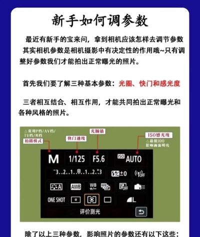 相机基本参数设置涉及光圈、快门速度和ISO感光度的调节,三者共同决定曝光效果,帮助用户掌握基础拍摄技巧。