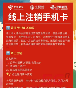 手机卡注销可通过营业厅APP或线上渠道,如联通手机营业厅APP,需身份验证并上传信息,部分卡有合约期需注意违约金问题。