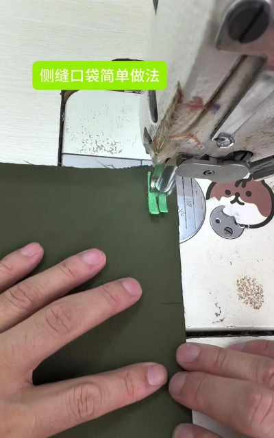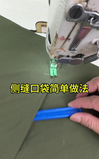 在大衣上缝制口袋需剪开布料并缝合,涉及放松量计算和结构纸样制版,适合学习缝纫技巧。