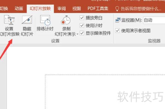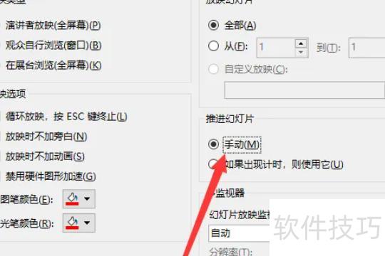 在放映设置中,选择手动换片方式,即可关闭自动播放功能。