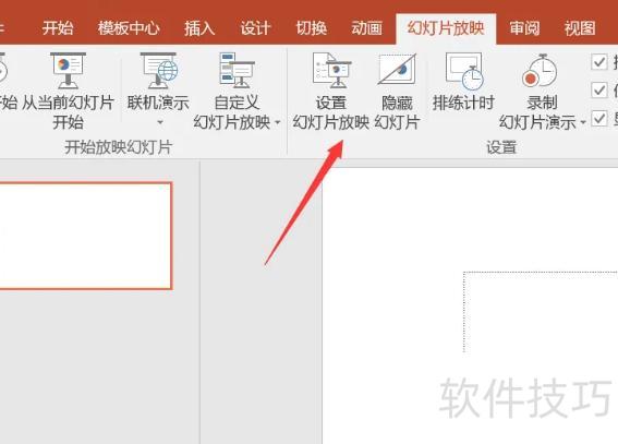在幻灯片放映选项卡中点击设置幻灯片放映图标。