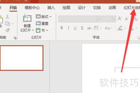 点击顶部菜单栏中的幻灯片放映选项。