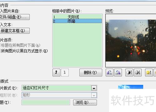 启动PowerPoint 2003,选择菜单栏中的插入→图片→新建相册,系统将弹出相册对话框。点击文件/磁盘按钮,打开插入新图片窗口,从中选择需要展示的图片文件。可按住Ctrl键选择多个不连续的图片,或按住Shift键选取连续的一组图片,确认后点击插入按钮。所选图片即会显示在相册中的图片列表中。在列表中选中任意一张图片,其右侧的预览区域将实时显示该图片的展示效果。用户还可通过图片列表下方的编辑工具按钮,对图片进行简单处理,如调整图片在演示中的排列顺序、修改亮度与对比度、实现水平或垂直翻转等操作,从而优化相册的整体视觉呈现效果。