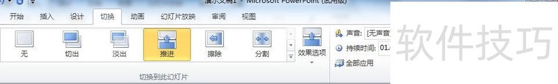 在菜单中选择幻灯片放映/幻灯片切换,打开对应对话框,于切换效果列表末尾选取随机选项,设置好速度与声音等参数后,点击应用于所有幻灯片按钮完成设置。