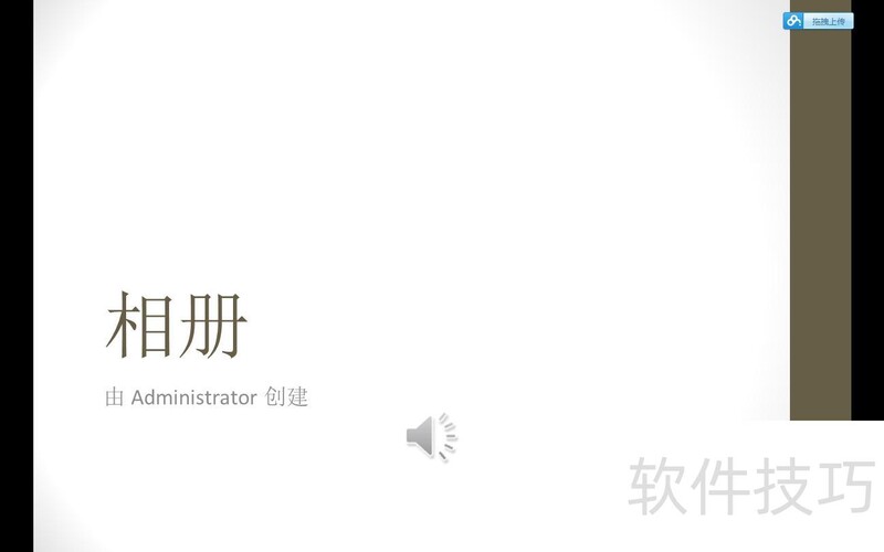 在普通视图下,选中首张幻灯片,执行插入→影片和声音→文件中的声音命令,从本地磁盘选择所需音频文件(格式不限)。随后弹出播放时机提示框,选择自动播放,确认后幻灯片上即显示一个小喇叭图标,表示音频已成功插入并设置为自动播放。