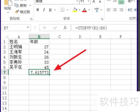 选择后点击确定,即可查看计算出的标准差,所示。