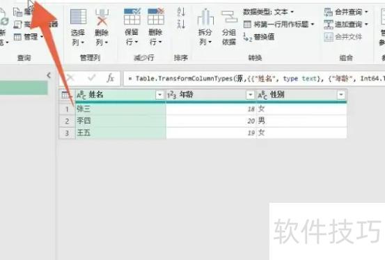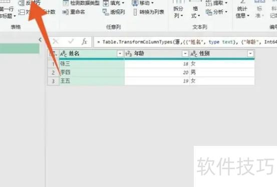 点击转换选项卡中的来自表格区域,进入新界面后再次点击转换选项卡。
