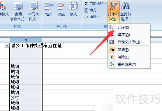 选择数据后,点击右上角开始中的筛选并按升序排列。