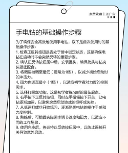 手电钻的使用技巧 1. 选取合适的钻头:选择合适的钻头是手电钻使用的第一步.钻头的选择应根据钻孔的材料和孔径大小来进行.通常情况下,钻孔材料较硬时应使用较小的钻头,而钻孔材料较软时则可以使用较大的钻头. 2. 确定钻孔位置:为了避免在钻孔时发生偏差,必须用尺子或其他工具精确确定钻孔位置.在钻孔的过程中还需要不断调整角度和位置. 3. 控制钻孔速度:钻孔速度过快易造成钻头变钝或者钻头断裂,钻孔速度过...
