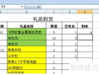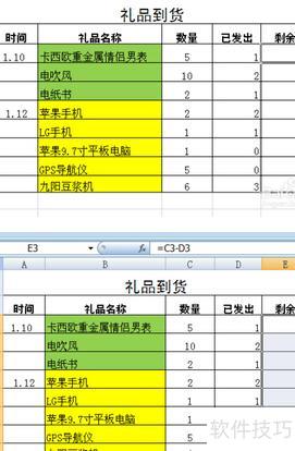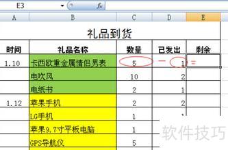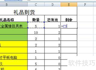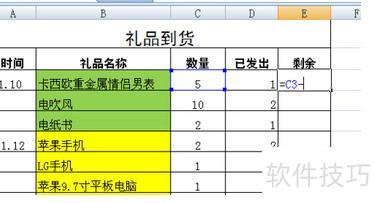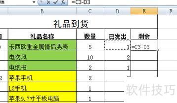 根据图示,需计算E3单元格的值,即C3减去D3,现在开始操作。