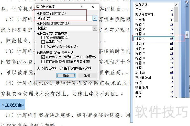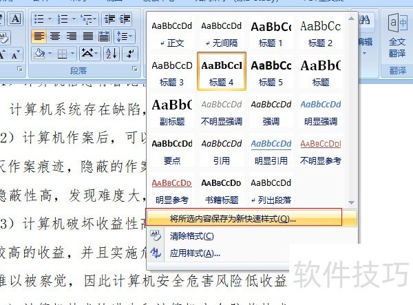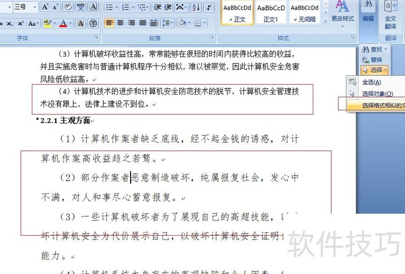根据设定查找标题四,正文内容不同,需添加新样式,使用F4快捷键并选中相似文本进行应用。