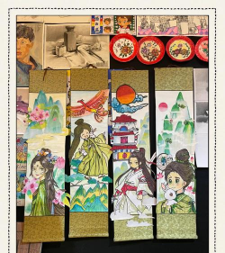 接下来,工作人员展示了“福”字纹样、祥云图案等传统符号,并现场示范了贴金、上色等制作步骤。参与者们目不转睛,边看边学,积极提问,展现出浓厚的兴趣。 每位参与者在选用金箔、朱砂等传统材料的同时,还在绢帛卷轴...