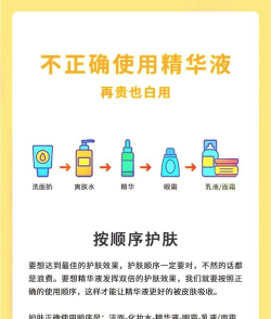 精华液使用方法包括取适量于掌心,均匀涂抹脸部,避开眼周,轻轻按摩促进吸收,最后用乳液或面霜锁住营养,白天需做好防晒。