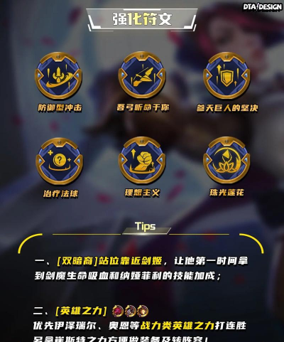 三相之力、渴血战斧、挺进破坏者是较为合适的选择,而本人认为 挺进破坏者与剑姬的相性有绝对优势 。 (技能急速可以减少主动效果的冷却时间,但客户端并未注明。) 攻击力、生命值、技能急速,都能有效提升剑姬的作战能力...