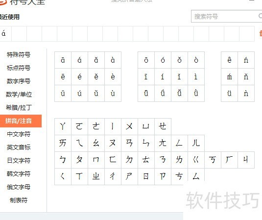 使用搜狗输入法时,将鼠标移至键盘图标并左键点击,弹出四个选项后,再次左键选择特殊字符,进入后点击拼音/注音栏目,即可显示所需拼音符号,选取合适的注音即可完成操作。