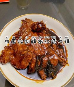 葱烤大排 ,过程略为繁复。 需要将肉用榔头敲软,再用料酒腌制去腥,然后裹粉油炸 上色,爆葱,大火将肉和香料炒香。最后加水小火炖软烂,最后大火收汁。...