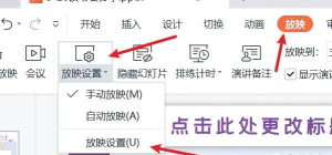 3. 在其下拉菜单中选择设置幻灯片放映功能。