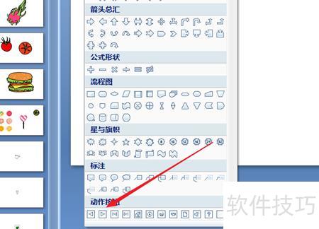 在形状下拉菜单中,选择底部的动作按钮选项。