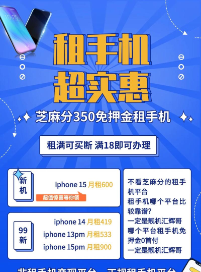 手机租赁费用因平台和机型不同而异,部分平台提供信用免押服务,用户可灵活选择适合自己的租赁方案。