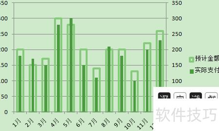 完成预计金额初步设置后,进入实际支付设计,右键点击实际支付,选择设置数据系列格式。