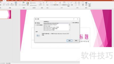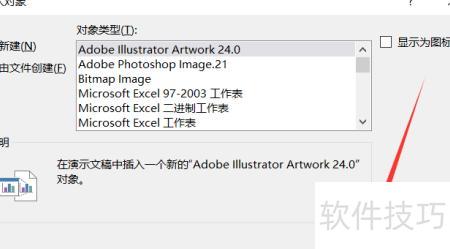 所示,点击弹出插入对象对话框,选择所需插入的对象。
