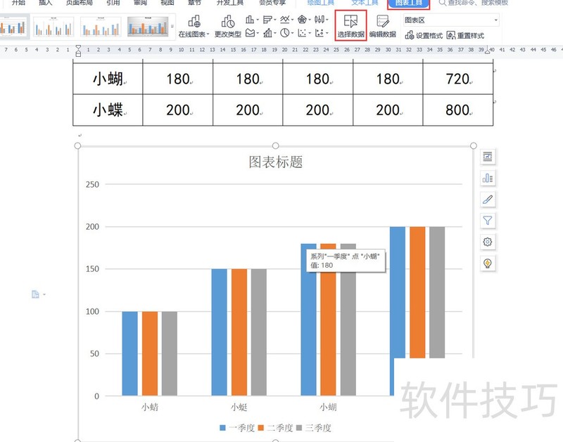 选中图表后,在图表工具选项卡中点击选择数据按钮。