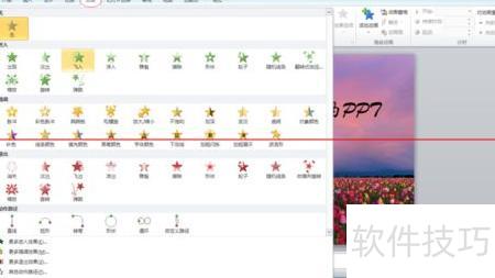 选择一项内容添加动画,选中后设置其参数;采用相同方式,可为窗口中不同内容逐一添加多样动画效果。