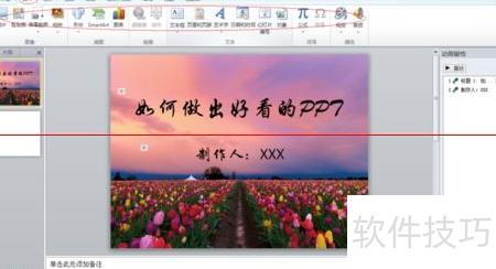 在菜单栏中选择动画选项,为幻灯片添加动态效果,提升演示的生动性。通过效果选项设定动画方向,动画窗格进行更细致调整。对文字、图片等元素应用动画,使内容呈现更加流畅自然,增强视觉表现力,让整个PPT更具吸引力和感染力。
