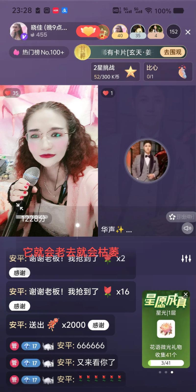 在全民K歌开直播赚黑心钱,在他的粉丝中大部分都是70多岁60多岁的少,还有一个91岁了,这位主播依仗他的歌唱的好听,天天发一些年轻人唱的情歌,来忽悠这一群老年人为他送礼物,那位老大姐今年80岁了,每天晚上都在给...