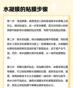手机软膜贴法步骤包括清洁屏幕、对齐边缘、从一端贴向另一端,用刮板抚平气泡,确保贴合无褶皱。
