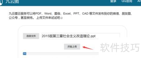 进入九云图官网,点击选择文件,上传你想分享至朋友圈的PPT内容。