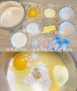 蓝莓菠萝面包的馅料配方:(1)a主面高筋面粉2500克(2)砂糖275克(3)全鸡蛋250克(4)奶粉100克(5)清水1250克(6)改良剂9克(7)练奶150克(8)食盐25克(9)低筋面粉适量(10)全鸡蛋100克.