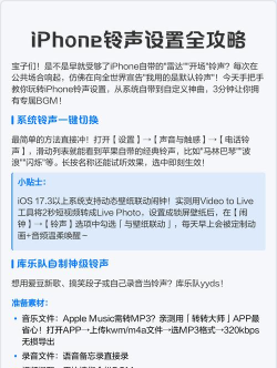 手机铃声需为MP3、WAV等常见格式,部分教程提及苹果铃声需转换为m4r格式,确保文件完整以避免设置失败。