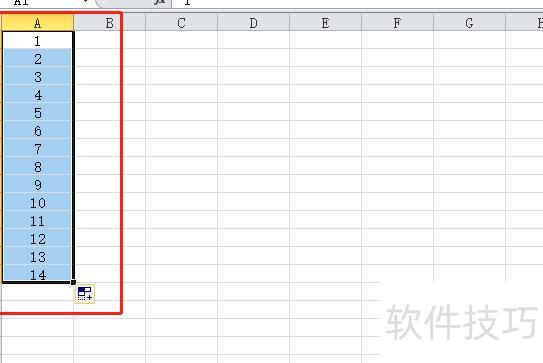 向下拖动后数字递增显示,表明填充格式设置成功。
