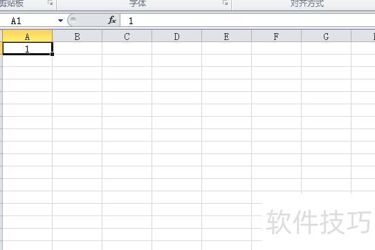 以Excel 2010为例,所示,将A1单元格中的数字1向下拖动,使其按递增方式填充。