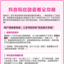 抖音团是抖音为了增加粉丝与主播之间互动而推出的功能. 粉丝团有什么用? 对粉丝来说 加入了粉丝团以后,可以获得一个粉丝的勋章,同时在主播聊天的时候可以设置特殊的颜色以及弹幕,在进入直播间的时候有特殊的进场特效. 对主播来说 加入了粉丝团的粉丝,可以收到我们的开播提醒,同时粉丝团人数越多,说明自己的铁粉越多. 加入粉丝团有哪些福利? 由于抖音最近正在大力推广直播,很多朋友表示对加入粉丝团很感兴趣,那...