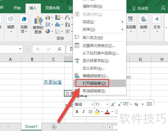 Excel中打开链接的方法步骤