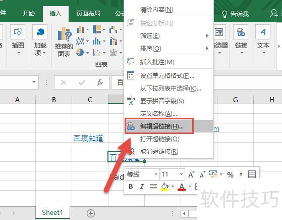 右键点击单元格,选择编辑超链接进行修改。