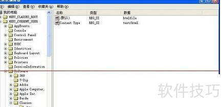 若在HKEY_CURRENT_USERSoftwareClasses目录下未找到.html对应的Max2.Association.HTML项,可手动新建一个名为.html的项,然后将其键值设置为Htmlfile,修改完成后保存并退出注册表即可完成配置。