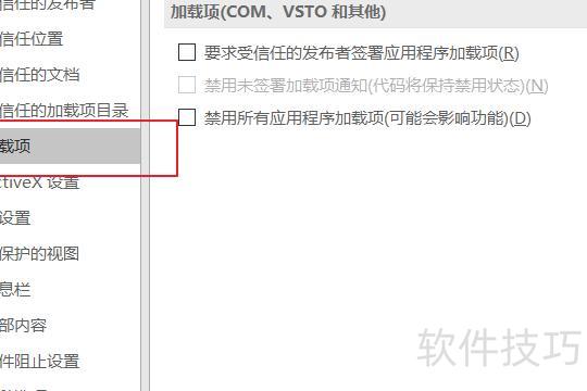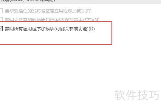 7、勾选禁用所有应用加载项,可避免两个文件弹出。