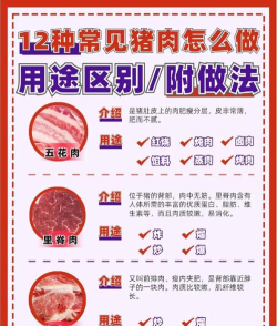 猪肉烹饪方式多样,包括煎炒烹炸、卤制、红烧、麻辣等,需根据具体做法调整配料和步骤,确保美味可口。