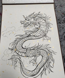 飞龙工笔画技法注重传统技法与云纹水纹表现,常用白描、平涂、分染等方法,展现细腻质感。