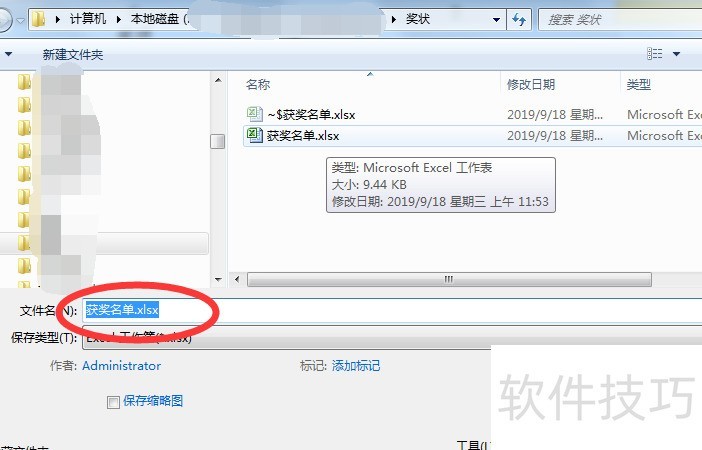 将新建的电子表格命名为获奖名单.xlsx。