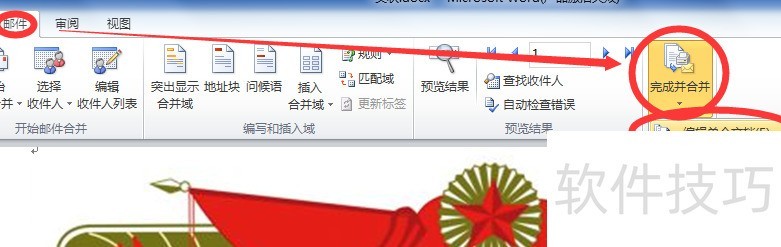点击邮件菜单,选择完成并合并,然后在下拉菜单中点击编辑单个文档。