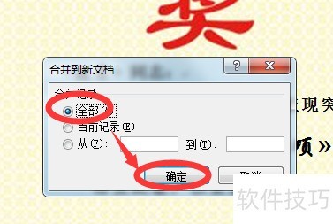 在弹出的对话框中选择全部记录,点击确定,即可完成合并操作。