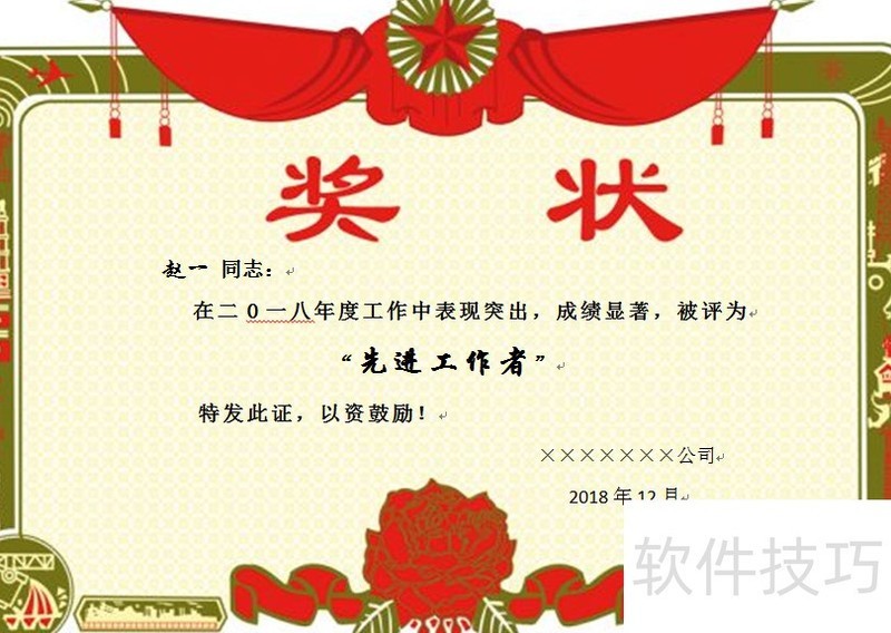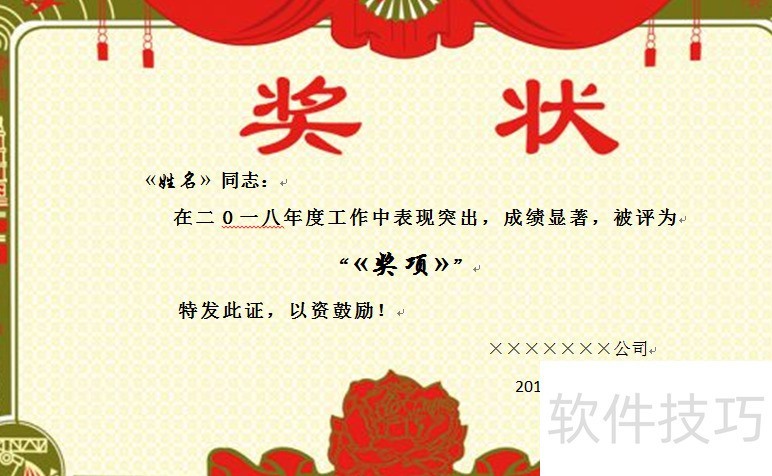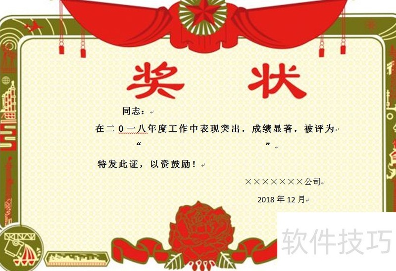第二步:制作奖状模板的Word文件