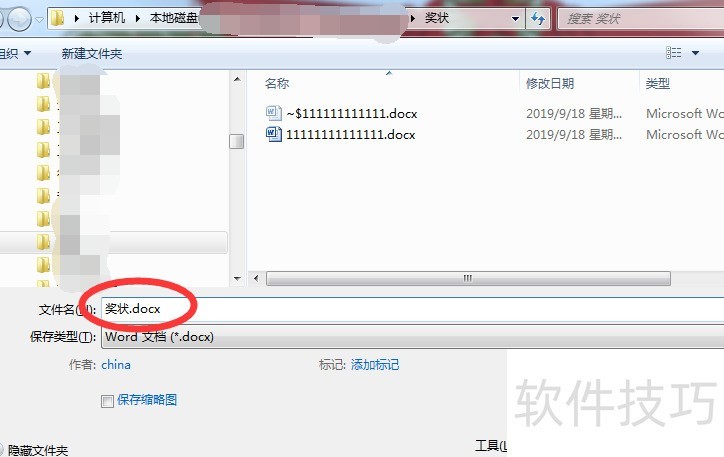 将新建的奖状模板保存为奖状.docx。