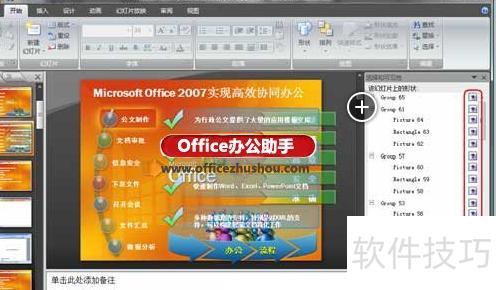 单击任一对象或形状可视化图标,该形状即在幻灯片中隐藏,便于灵活分层管理对象,并对可见元素进行操作。