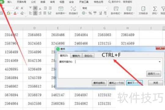 看到表格中密密麻麻的数字,想快速找到2565894,可点击选项卡中的功能,更便捷的方法是掌握快捷键,能迅速定位目标数据。