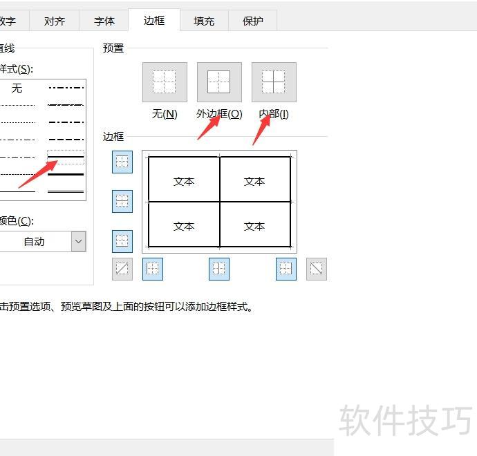 点击左侧样式中的粗实线,再依次点击右上角的外框与内部分。
